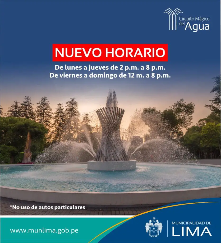 El horario de atención del Parque de las Aguas es de 9:00 am a 6:00 pm.